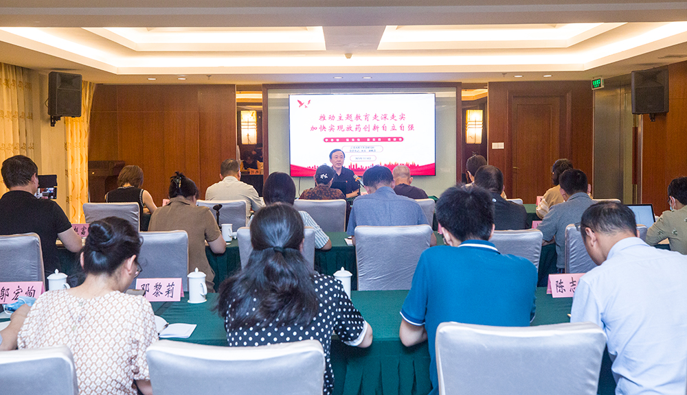 為深入推進學習貫徹習近平新時代中國特色社會主義思想主題教育,根據省衛生健康委主題教育工作總體部署和我所主題教育工作安排,7月18日下午,在江原山莊東林廳會議室,所黨委書記、所長謝敏浩同志以《推動主題教育走深走實 加快實現放藥創新自立自強》為題,為所中層及以上干部、在職黨支部班子成員及工團負責人上主題教育專題黨課。